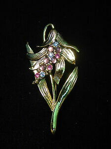 jj jonette jewelry bright gold pewter jeweled bell flower pinジョネットジュエリーブライトゴールドピューターベルフラワーピン