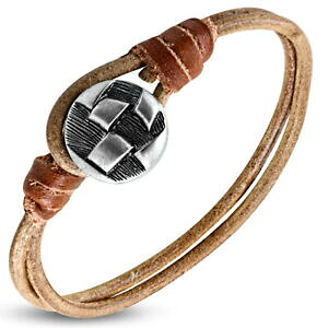 in pelle con doppi fili marrone chiaro zb0303ダブルライトブラウンスレッドメンズレザーブレスレット