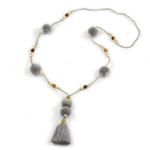 trasparente collana lunga perle di vetro 88cm l10cmライトグレーポムポンナッパネックレスロンググラスパール