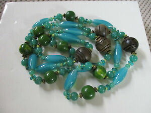 vintage turchese perle di vetro in bachelite e legno molto insolita colori bellissimiバチェライトヴィンテージターコイズガラスビーズ