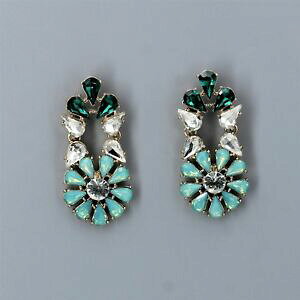 boucle doreilles fashion clou mint green emeraude cristal fleur rond vintage x5ファッションミントグリーンエムロードクリスタルビンテージハイライト