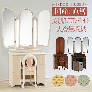 LEDの女優ライト付きドレッサーでロマンティックな雰囲気を堪能できます。 いろいろな角度からメイクやヘアスタイルを確認できる楕円形の三面鏡タイプ。 上品な曲線脚のデザインを合わせたスツール...