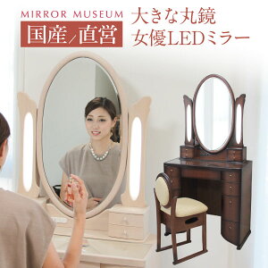LEDの女優ライト付きのドレッサー。いろいろな角度からメイクやヘアスタイルを確認できる楕円形の三面鏡タイプ。上品な曲線脚のデザインを合わせたスツール付き 本体サイズ-幅(cm)ドレッサー:90、スツール:37 本体サイズ-奥行(cm)...
