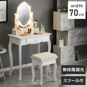 【商品説明】LEDの女優ライト付きドレッサーでロマンティックな雰囲気を堪能できます。上品な曲線脚のデザインを合わせたスツール付き【商品サイズ(外寸)】ドレッサー:(約)幅70×奥行42×高さ130cm...