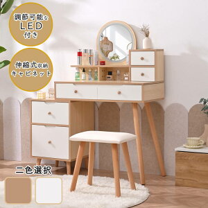 長時間のメイクも快適です。また、スツールの下には収納スペースがあり、タオルや雑貨などを収納可能です。 【三色調光LEDミラー】ミラーには3種類の色温度(暖色、自然光、寒色)に切り替えが可能。さらに、長押しすることで明るさの調整も簡単に...
