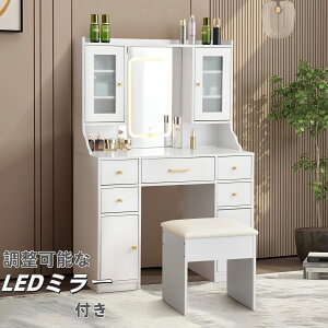 すい ■LEDライト付きミラーではっきり見える ■明るさ無段階調整でお好みの明るさに ■充実の収納スペースでたっぷり収納 ■段差違いのテーブルで便利に使い分け 【商品内容】:LEDライト付き