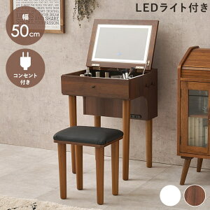 LEDの女優ライト付きドレッサー。天板を閉じれば簡易デスクに早変わり。一緒に使えるスツールがセットで付いています。 [サイズ] ドレッサー:(約)幅50(フック含:52)×奥行47〜60/44.5×高さ94〜100/68cm...