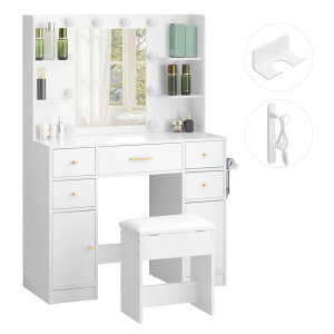 で、モダンでシンプルで、どんなインテリアにもぴったりです。 【3色LEDライト】この白いドレッサーセットは、インテリジェントなLEDミラーがついていて、ワンタッチで暖色、白色、寒色の3色を切り替えて、...