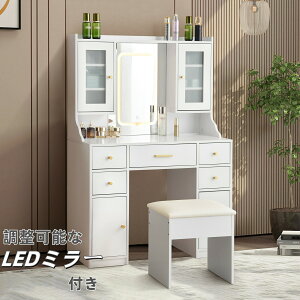 ドレッサー 化粧台 3色調節 鏡台 LEDミラー LEDライト付き