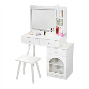 、モダンでシンプルで、どんなインテリアにもぴったりです。 ?【3色LEDライト】この白いドレッサーセットは、インテリジェントなLEDミラーがついていて、ワンタッチで暖色、白色、寒色の3色を切り替えて、...