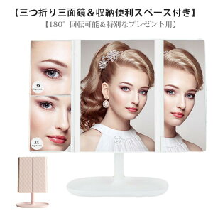 卓上ミラー 三面鏡 ライト付き usb充電式 おしゃれ LED 卓上鏡 充電 鏡 明るさ調整 持ち運びやすい 旅行 卓上鏡 可愛い 鏡 卓上 鏡 おしゃれ 化粧鏡 卓上ミラー 化粧鏡 ledライト付