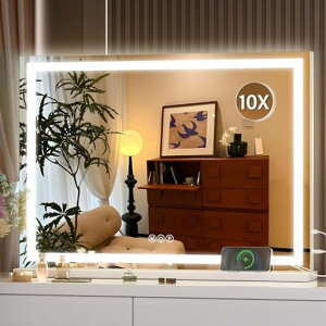 メイク 【サイズ10倍拡大鏡】ハリウッドメイクアップミラーのサイズは60x50.7cmで、メイク、ヘアスタイル、ジュエリー、服が一致しているかどうか見せるのに十分な大きさです。さらに、付属の10x拡大鏡は、詳細を確認したり、メイクしたり