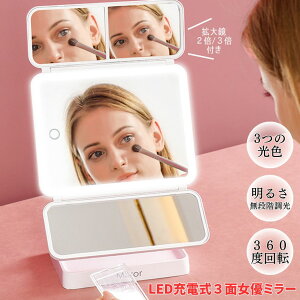 【商品説明】 中央ミラーに22個の高輝度LED搭載で、圧倒的な明るさ。 天候や照明に左右されることなく、メイクをすることができます。 ボタンの長押しで明るさ調節が可能。 2倍3倍拡大ミラー付きで細かい部分のチェックもラクラク...