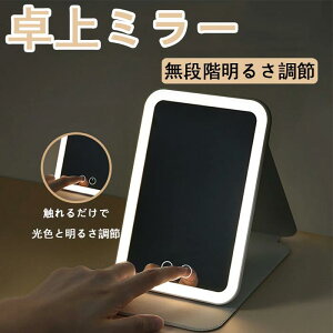 アなミラー/無階段に調光する/長時間利用可能 LED ライト付き LEDブライトミラー LEDミラー ドレッサー 卓上ミラー 鏡 ライト LED 化粧鏡 照明 メイク 自然な光でもっとリアル 3色調節可能...