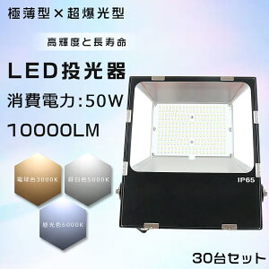 製品仕様 ■製品名 超薄型 LED投光器 50W ■消費電力 50W(500W水銀灯相当) ■色温度 電球色3000K・昼白色5000K・昼光色6000K ■本体サイズ 約267*222*50mm ■本体重量...