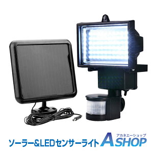 ◆昼間に太陽エネルギーをうけ電力を充電!! ◆高輝度LED60個搭載で抜群の明るさを発揮します ◆人感センサーで防犯対策に効果抜群! ◆3つダイヤルボタンで点灯時間やセンサー感知度を調整することができます...