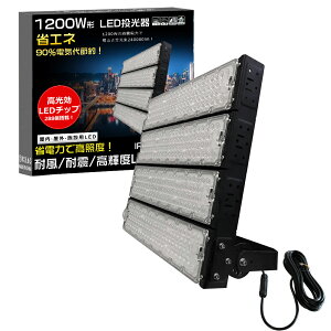 商品詳細 商品名 LED投光器 1200W型 定格消費電力 1200w 全光束 240000lm 照射角度 120° 入力電圧 AC85-265V 50/60Hz 発光色 電球色/昼白色/昼光色 演色性...