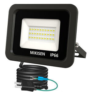 MIKISEN led 投光器 作業灯 看板灯 20w 昼光色 2300LM 6500K 180w相当 1.8コード IP66防水 アース端子付2Pプラグ 120°広角 100V対応 ワークライト 工事用ライト...