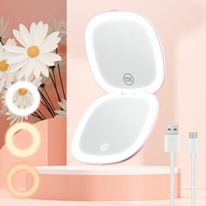 LEDライト化粧ミラー:化粧鏡には高輝度LEDライトストリップが配置されており、明るくて目に優しいで、目元や口元などの凹凸の部分に影をつけることなく均等に顔を明るく照らし、メイクムラを防ぎます。 3色...