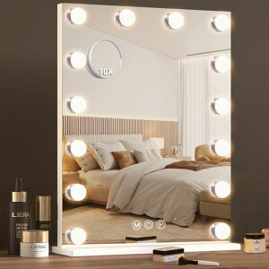 メイク 【14個のLED電球10X拡大鏡】女優気分になれるミラー!!!14個のLED電球を囲む化粧鏡が全身を均一に照らし、肌の色を美しく見せてくれます。また、10倍拡大鏡を搭載しているので、アイメイクなどに便利です...