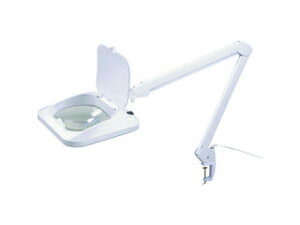 全金属構造を持つ堅牢性の高い照明拡大鏡です。 ●角形のレンズは、丸型のレンズで発生するレンズ外周部の歪みをカットしており、全数検査等、長時間の作業にも対応が可能です。 ●LED式でありながら、蛍光灯式と同等の照度と拡