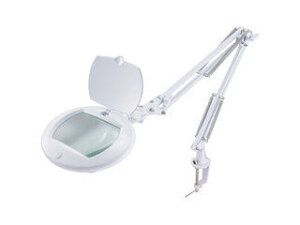 約1.7倍拡大の大型レンズ採用で両眼でも見やすいLEDライト付きルーペ●明るさを5段階調光でき、スイッチOFF後も直前の明るさを記憶●精密作業におすすめ●照度JIS規格AA形相当で広範囲を明るく照ら