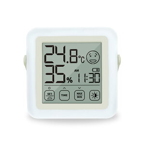 多機能デジタル温湿度計 温度&湿度&湿度の感知表情があり 現在の湿度によって 室内環境を判断できます。 バックライトボタンを押すことでバックライトが点灯します。 周囲が暗くても温度 湿度&時間などの確認ができすごく便利です。 ア