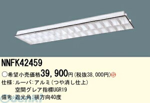パナソニック電工 施設照明EVERLEDS 直管形LEDランプ搭載ベースライト用スペースコンフォートNNFK42459【LED照明】■ルーバ:アルミつや消し仕上■空間グレア指標UGR19■遮光角:横方向40度※商品の機能...