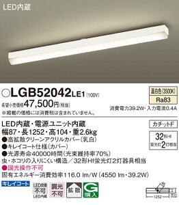 LED内蔵、電源ユニット内蔵LED(昼白色)色温度:5000K安定器出力型:定格出力型安定器補足:出力固定型電圧:100〜242V【ライトバー(カバー)】ポリカーボネート(乳白)スペースコンフォートタイプ...