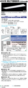 LEDioc LEDベースライト (LEDユニット一体形) 40W形 埋込下面開放形 <220mm幅> Hf32形定格出力形相当 5200lmタイプ 2灯用相当 (一般タイプ) 受注生産品 旧形式:ELE45202CNPZ9...