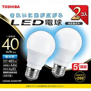 LED電球40W E26 広配光 昼光色 LDA4D-G-4T6。●該当シリカ電球:40形相当。●消費電力:4.4W。●口金:E26。●全光束[lm]:485。●定格寿命:40000時間。●色:昼光色...