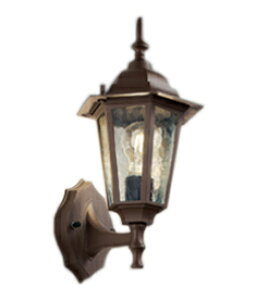 灯具周辺と下方向への配光で効率よく明るさを確保できます。◆暗くなって人が近づくと自動点灯します。白熱球40W相当ランプ:LED電球60形相当(E26)本体:アルミ・ウォームシルバ