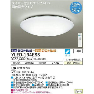 DAIKO 大光電機 調光調色 LEDシーリングライト 〜6畳用 昼白色〜電球色 YLED-194ESS 便利な調光調色タイプ ■LED27.5W ■昼光色6500K・Ra83〜電球色2700K・Ra83...