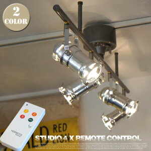 シーリングライト 天井照明 BK SV 4灯 電球付 LED対応 多灯式 リモコン付 スチール ヴィンテージ レトロ インダストリアル 男部屋 無骨 スタジオ お洒落 カフェ 照明 リビング ダイニング