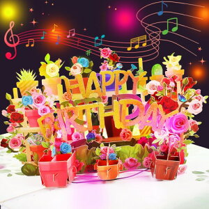 3Dポップアップバースデーカード, 音楽&LEDライト付き, 花束デザイン, 女性向け, 母, 妻, 娘, 彼女, おばあちゃん, 女友達への誕生日プレゼント ?【音楽と光でサプライズ】カードを開くと、明るいLEDライトが点灯し...