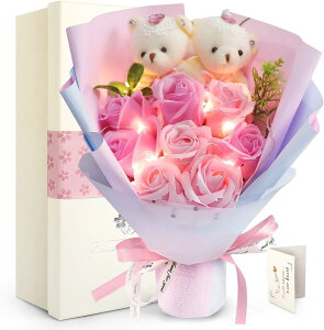 ?【商品仕様】LEDライト+ソープフラワー+二つ可愛いベア+綺麗な蝶結び+精美な包装。サイズ:約高24cm デザイン:自主的に研究した製品です、最も流行な韓国式のデザインスタイル。?【キラキラの花】当社は完全的に自主的に研究した