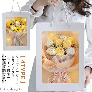 【4TYPE】【ソープフラワー×ドライフラワー】【ライト付き】【手提げ袋付き】〜そのまま飾れる枯れない花束〜花粉や毒がないのでアレルギーの方やペットと暮らしている方にも安心して贈れます。生花でないので枯れることなく...