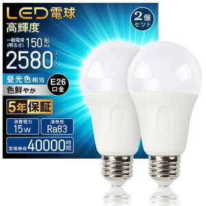 LED電球 E26口金 150W形相当 昼光色 6500K 15W 2580lm 高輝度 広配光タイプ 高演色 省エネ 目に優 密閉形器具対応 調光不可 PSE認証済み 2個 商品サイズ(mm):直径約60×高さ約116...