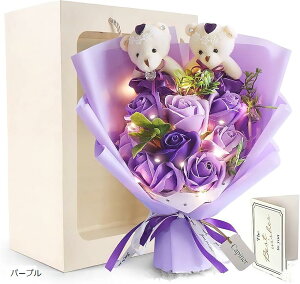 2b2trf4sj9商品コード2b2trt2ly4商品名笑顔輝く 花束 ソープフラワー LED 誕生日 プレゼント 結婚祝い 女性 くま 薔薇 造花 花 メッセージカード ショップバッグ付 パープルブランドCapine...