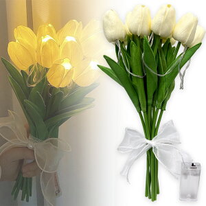 優しく光るチューリップ型のライトまるで本物のような質感のチューリップの花束のライトです。そのまま飾って造花として、ライトをつけてインテリアライトとしてお使いいただけます。〇こんなお悩みをお持ちの方へ・部屋に花を飾りた