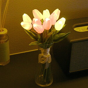 チューリップ フラワーライト 2色選べる 造花 LED インテリア ライト 花束 花 フラワー ルームライト ブーケ ブーケライト ブリザードフラワー ブリザーブドフラワー ナイトライト 花瓶 電池 照明...