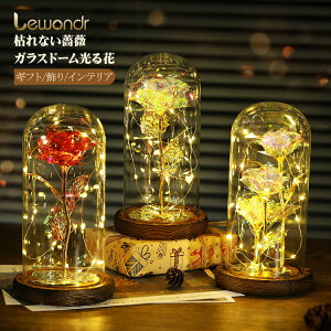 ボックスプセント 永遠の花 バラ ledライト ギフト ガラスドーム ケース入り ラッピング済み 妻サイズ:直径12cmX高さ18cm ポット:ガラス 台座:天然木 LEDライト付き:スイッチと電池交換は底面あります...