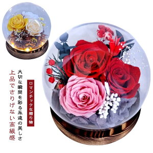 プリザーブドフラワー 母の日 フラワーギフト LEDライト付き ガラスドーム カーネーション ローズ フラワーアレンジ 枯れない花
