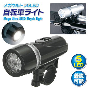 自転車ライト LED ヘッドライト 電池式 ライト 5LED 3段階 点灯 明るい 簡単取付コンパクトサイズなのに明るい 自転車用LEDライトです 上部のボタンを押すと3種類の点灯...