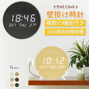 電波時計 木製置き時計 多機能 LED時間表示 大画面 デジタル目覚まし時計 アラーム機能 明るさ調整 温度・湿度表示 置き時計 木目デザイン