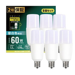 「LED電球 T形 E17口金 60W形相当 昼白色 高演色性 断熱材対応 全方向タイプ 6個セット キッチン/洗面所/浴室用 明るさ1270lm 5000K 電球型蛍光灯代替 省エネ(7.2W) 長寿命」...