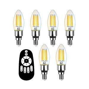 シャンデリア電球 6個入り B11 E12口金 600lm 消費電力4.5W(50W形相当) リモコン付き 燭台電球 蝋燭型 クリア電球 シャンデリア形 フィラメント電球 無段階調光 90%省エネ 広配光...