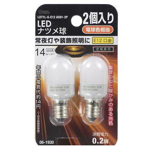 ・光色:昼光色 ・口金:E12 ・寸法:全長48mm×外径20mm ・定格消費電力:0.2W ・全光束:15lm ・定格寿命:40000h ■商品説明 ・LEDナツメ球の2個パックです。...