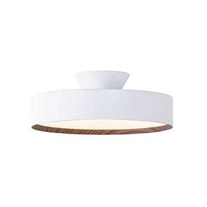 シンプルながらモダンなデザインのLED内蔵シーリングランプ。シェードの内側にさりげなく配置されたゴールドや木目調のパーツがアクセントに。