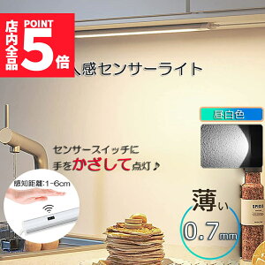 【非接触スイッチ】非接触スイッチに手をサッとかざすだけで電源をON/OFFします。導光板使用で、スリムなのにムラなくしっかり明るいスマートなLEDライトです。 【簡単取り付け】用途に応じてどこにでも使える薄型スリムなので、マグネッ